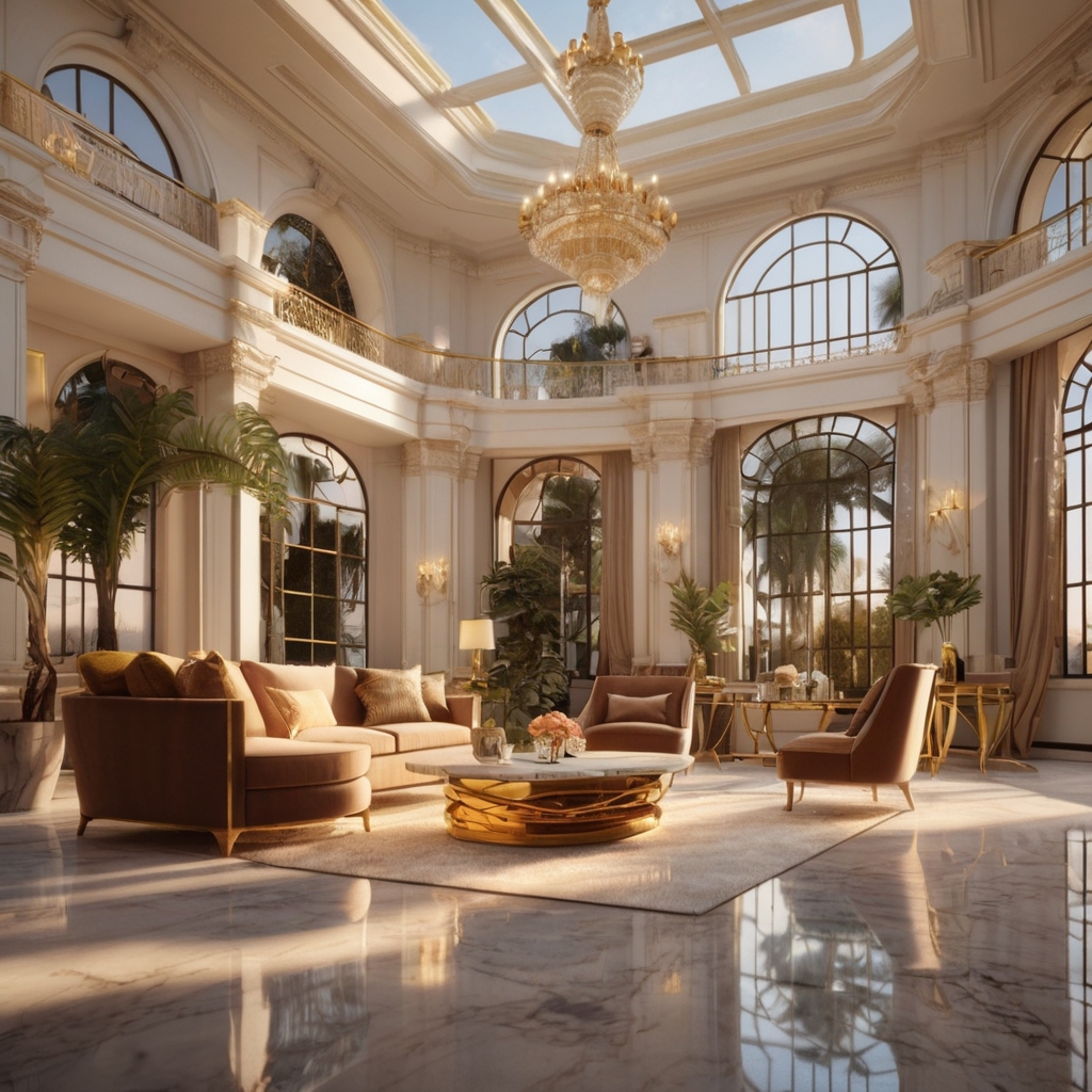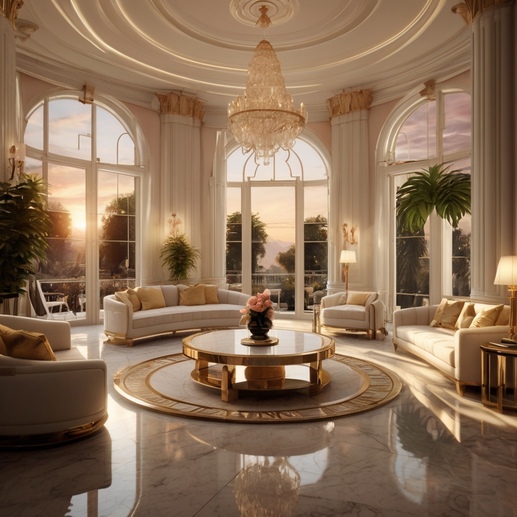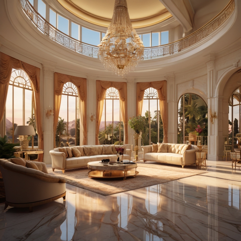 Perched atop the prestigious hills of Beverly Hills, this ultra-luxury mansion is a masterpiece of Hollywood Regency grandeur, bathed in the golden glow of a California sunset.