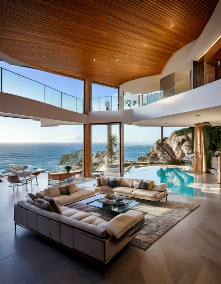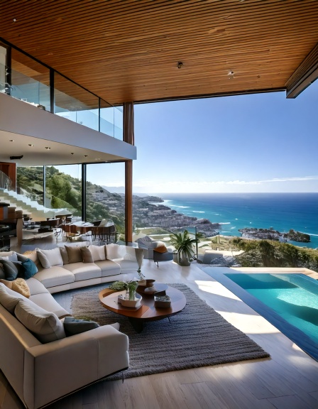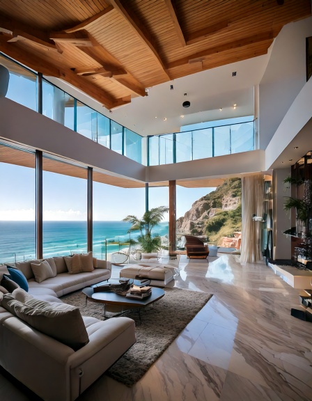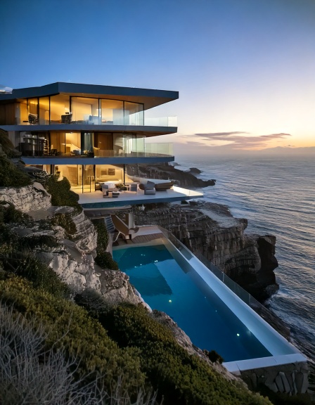 Perched dramatically on the edge of a coastal cliff, this ultra-modern mansion blends sleek architectural brilliance with unmatched natural beauty.