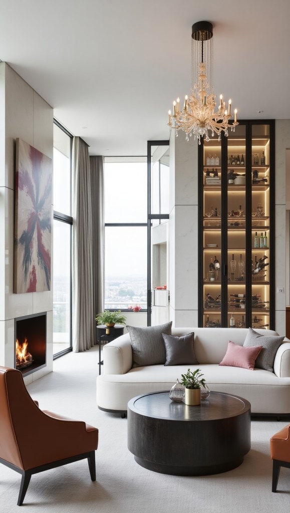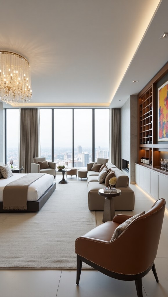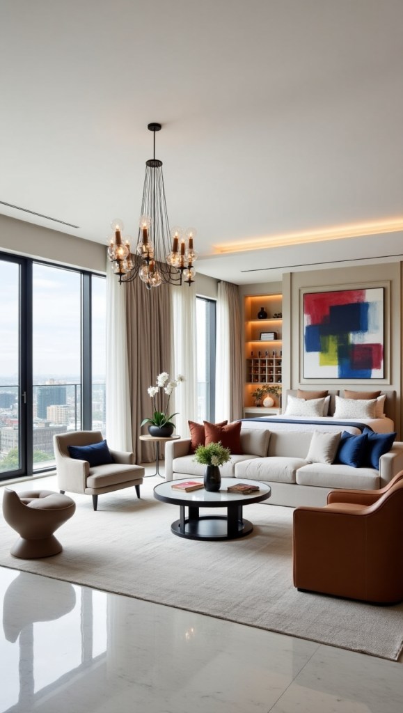 Use neutral tones (ivory, taupe) as a canvas, accented with vibrant art or bespoke furniture. Keywords: neutral luxury palettes, statement art pieces.