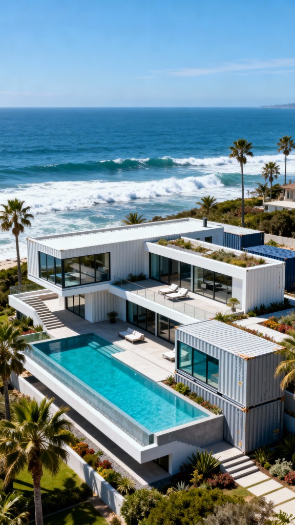 Container homes appeal to a growing audience because they blend sustainability with design. This estate demonstrates how eco-conscious construction can still deliver a luxurious lifestyle.